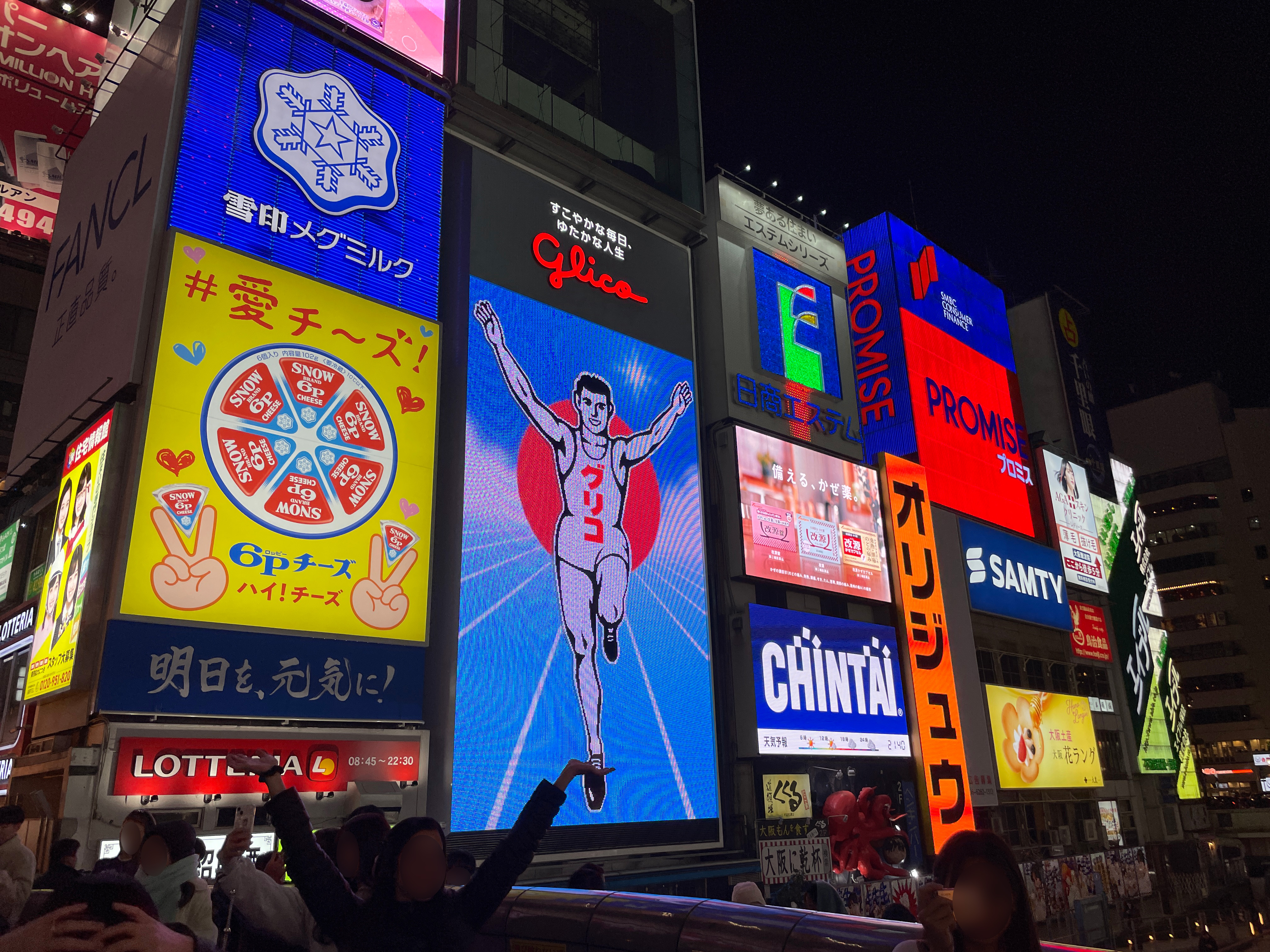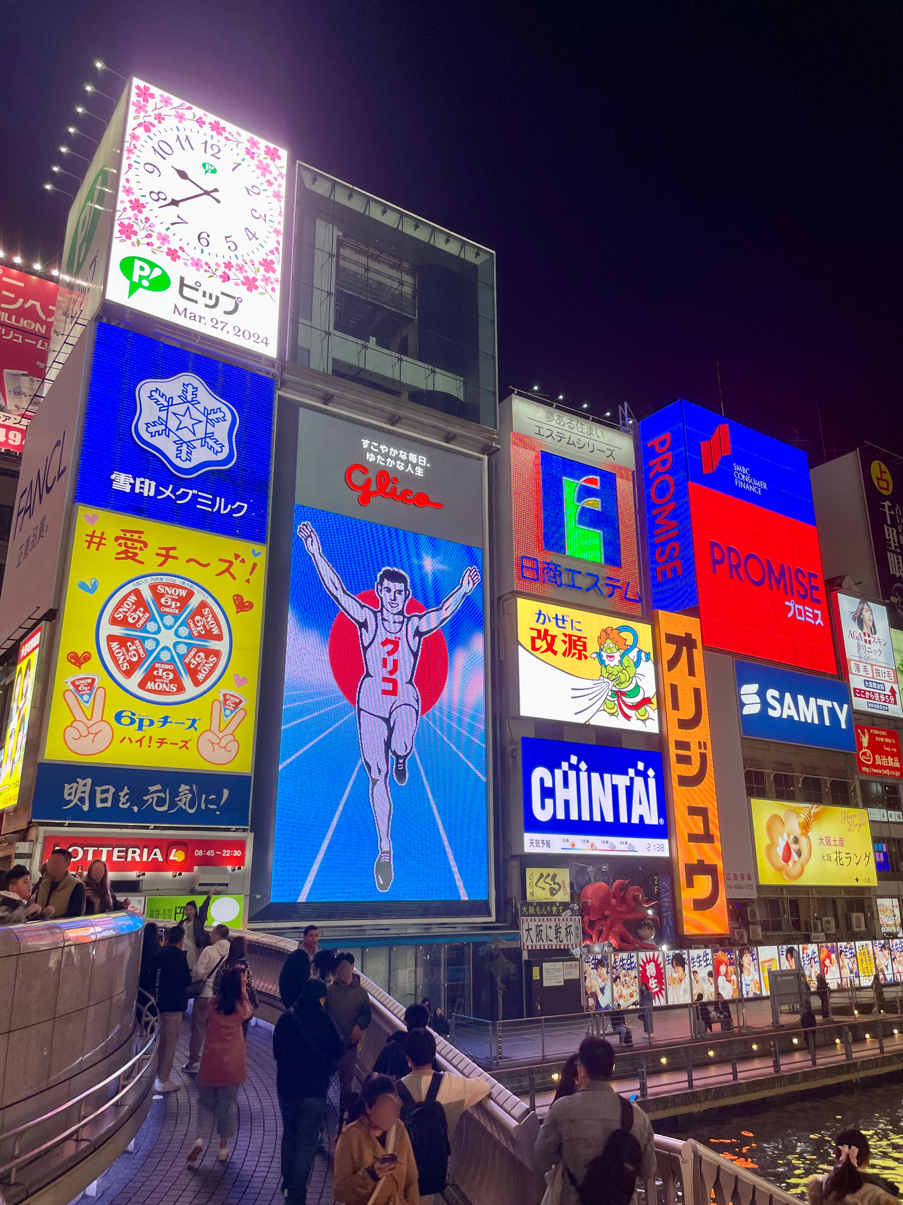 상점가 골목으로 쭉 걷다가 도톤보리 메인 거리로 나가는 순간이 가장 인상적이었다. 크고 화려한 형형색색 일본어 간판들과 글리코상이 두 팔 벌려 반겨주는데 이제야 뭔가 오사카에 온 느낌이었다.