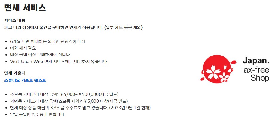 유니버셜 스튜디오 재팬은 면세가 가능하니,
