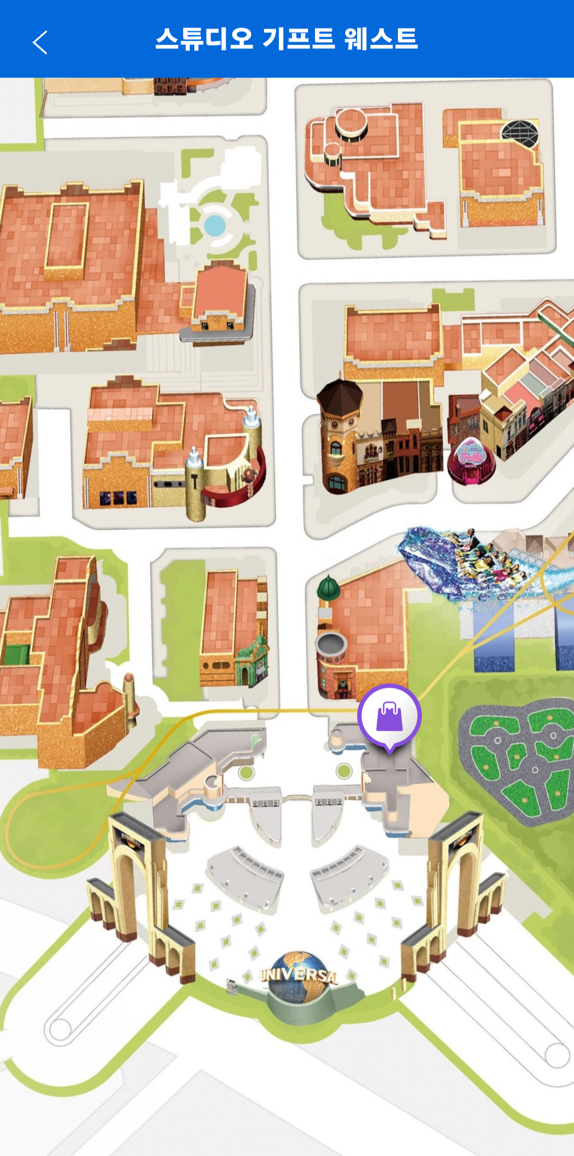 놀이공원 출입구 쪽에 위치해 있습니다.